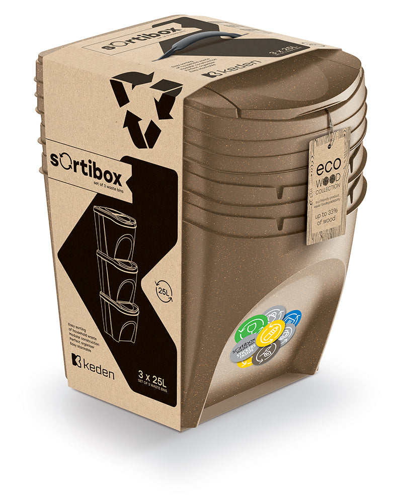 Kosz do segregacji odpadów Sortibox ECO Wood set 3x25l