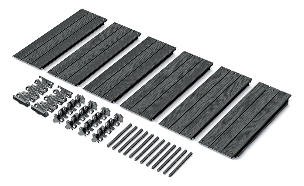 Neutralna kolorystyka oraz powierzchnia inspirowana drewnem sprawiają, że rabatki wkomponowują się w krajobraz ogrodu idealnie łącząc się z roślinnością.